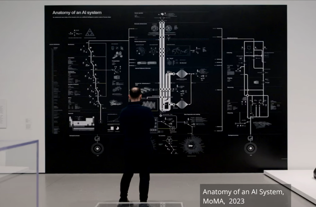 Isso está afetando nosso meio ambiente, nossos padrões de trabalho, nossas cadeias de suprimentos, nossas culturas visuais, nossos sistemas educacionais e até mesmo a forma como definimos e reconhecemos o próprio conhecimento. Embora haja tanta discussão sobre a IA como um tipo de inteligência abstrata e imaterial, ela é, em sua essência, uma indústria extrativa altamente material. E embora os sistemas de IA possam parecer radicalmente novos, na verdade eles estão repetindo um padrão de longa data. Como Nietzsche argumentou, e é claro que Battlestar Galactica nos lembra, já aconteceu antes e vai ocorrer novamente.