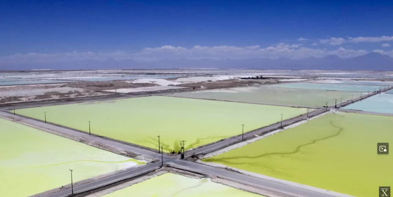 O que será necessário para digerir e modelar bem todos esses dados? Sabemos que a IA generativa já requer a energia de toda uma nação industrializada e muitos aquíferos de água, bem como enormes reservas de minerais críticos, apenas para construir e operar os data stacks [“Pilhas” gigantescas de ferramentas e tecnologias “em nuvem”, necessárias para coletar, armazenar, analisar e processar dados — Nota do tradutor], . Esta é a Salina de Atacama. É a maior planície salgada do Chile. Eu a visitei no ano passado e me encontrei com comunidades locais que protestavam contra a expansão das operações de mineração de lítio. Agora, Elon Musk chama o lítio de novo petróleo, e não é surpresa, dado que a Tesla estima usar cerca de metade das reservas totais de lítio do planeta. E há o Google, que implantou mais de 100 milhões de baterias de íon-lítio em todos os seus data centers globais desde 2015. Portanto, a pressão para aumentar a extração de lítio agora é extrema. O povo do Chile falou da queda dos lençóis freáticos, do colapso de ecossistemas frágeis e da perda de suas terras.