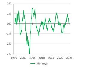 Diferença entre IPCA e INPC – acumulado em 12 meses