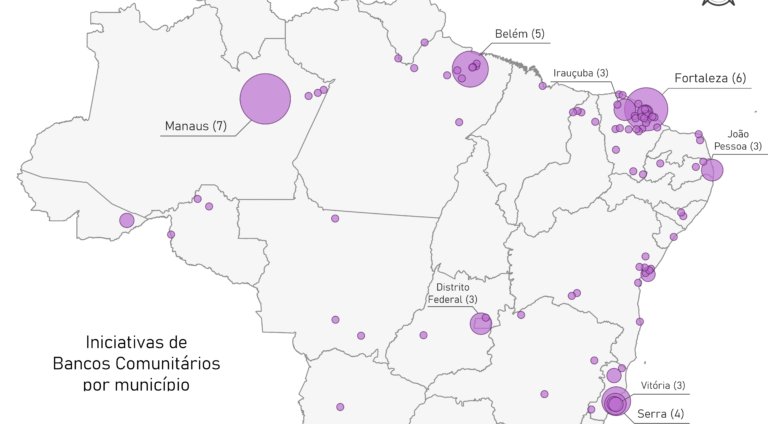 Em mapa, as instituições não-predatórias que brotam nas periferias do Brasil. São 148 iniciativas — 75% implementadas via políticas públicas. Além de crédito à população local, agora miram as moedas digitais e parcerias com prefeituras