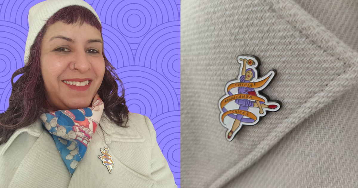 Esse acessório foi criado pela artista Tings Chak para um grupo de amigas estrangeiras e chinesas — do qual faço parte — que recebeu o nome provocativo “China Propaganda Chicks”, que pode ser traduzido como “as garotas da propaganda pró-China”.
