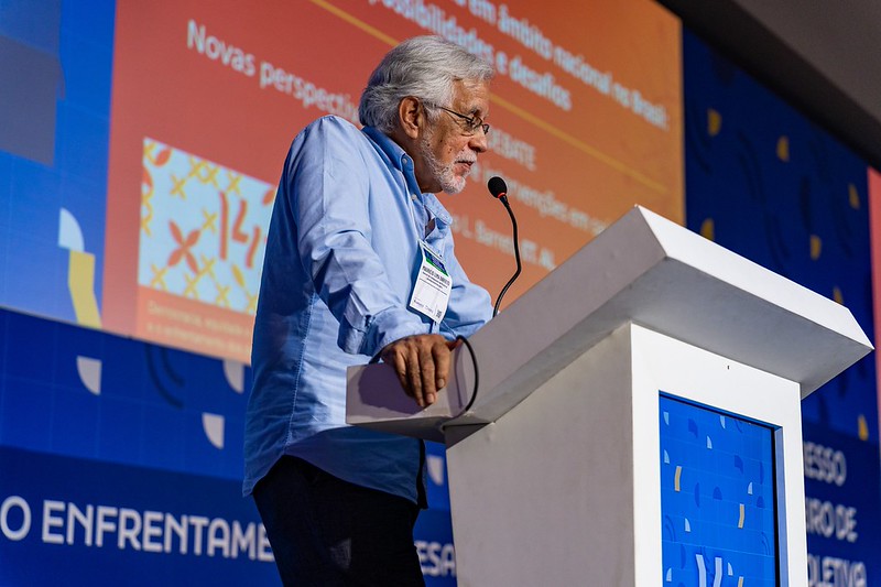 Dois dos maiores expoentes da ciência brasileira estiveram presentes na noite de terça (2) no 14º Congresso Brasileiro de Saúde Coletiva, ao lado da sanitarista, socióloga e ex-ministra da Saúde que comandou a reconstrução do SUS após a pandemia, Nísia Trindade. Eram os epidemiologistas Carlos Monteiro, fundador do Núcleo de Pesquisas Epidemiológicas em Nutrição e Saúde (Nupens/USP), e Mauricio Barreto, criador do Centro de Integração de Dados e Conhecimento para Saúde (Cidacs/Fiocruz) – duas enormes conquistas para a saúde dos brasileiros, com influência global. A concepção e condução do grande debate ficou a cargo do sanitarista e vice-presidente da Abrasco, Reinaldo Guimarães.