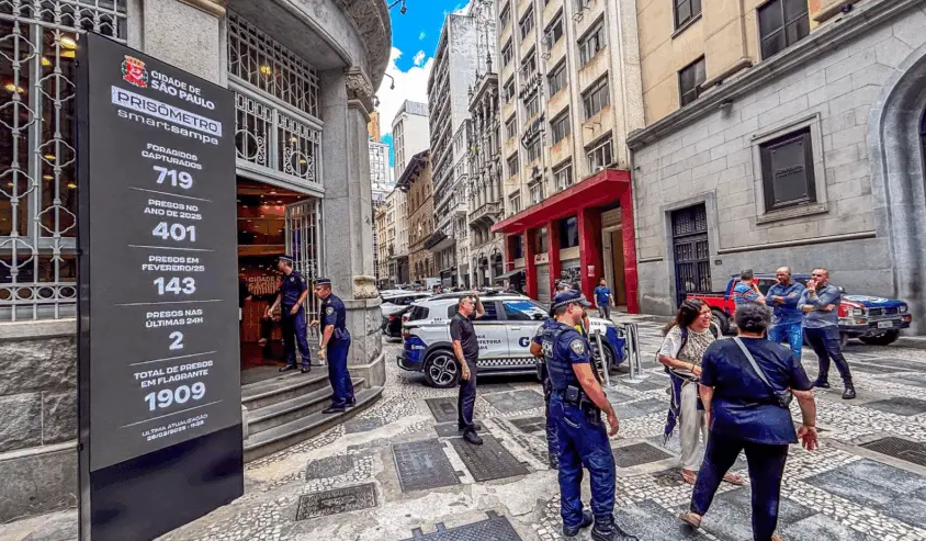 O “prisômetro” citado por Mariano é um painel de LED, com 3 metros de altura por 1 metro de comprimento, instalado na rua 15 de Novembro, em frente ao Centro de Comando do Smart Sampa. A tela apresenta o número de ocorrências com veículos, foragidos da Justiça capturados, presos em flagrante e de pessoas desaparecidas encontradas. O painel é atualizado diariamente e também está disponível no site oficial do programa.