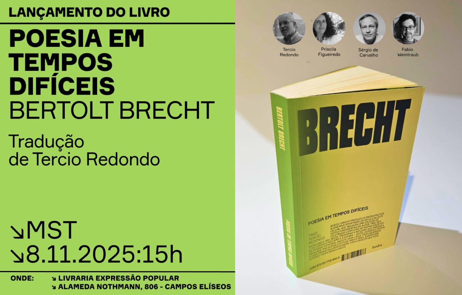 Pela primeira vez no Brasil, a tradução de coletâneas completas da poesia de Bertolt Brecht (1898-1956), que escreveu os versos políticos alemães mais importantes do século XX. Ao todo, são seis obras, escritas entre 1926 e 1953, reunidas em Poesia em tempos difíceis (editora Hedra), com tradução do professor de literatura alemã da Universidade de São Paulo (USP) e colaborador de Outras Palavras, Tercio Redondo.