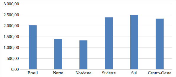 Rendimento médio mensal real domiciliar per capita, a preços médios do ano, Brasil e Grandes Regiões – 2024