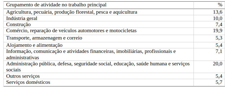 Pessoas de 14 anos ou mais de idade ocupadas na semana de referência por grupamento de atividade no trabalho principal