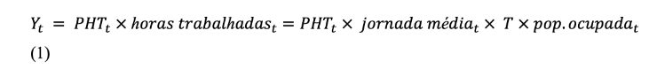 Em que Yt é o produto e PHTt é a produtividade/hora do trabalho em um intervalo de tempo t, a jornada média é medida horas por semana e T é o número de semanas contido no período t.