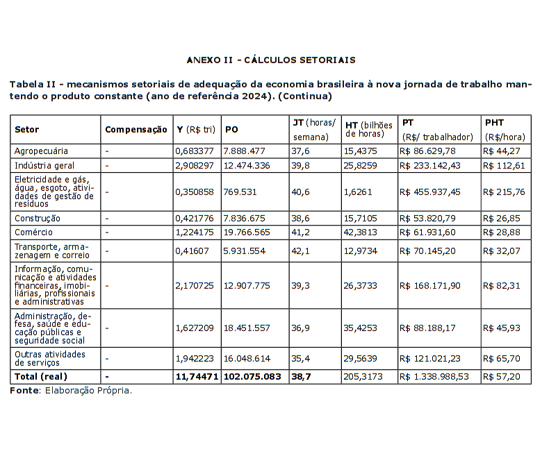 Com base em dados do Sistema de Contas Nacionais (SCN) e da PNAD Contínua (PNADc) para o ano de 2024, o exercício aqui apresentado permite dimensionar, setorialmente, quais seriam os impactos sobre produtividade, emprego e jornada de trabalho. Mais do que um exercício técnico, trata-se de uma intervenção no debate político, buscando deslocá-lo do terreno liberal e conservador para um terreno onde se reconheça que os efeitos econômicos da redução da jornada são, em larga medida, determinados pela escolha dos mecanismos de transição e, portanto, pela correlação de forças e pela vontade política.